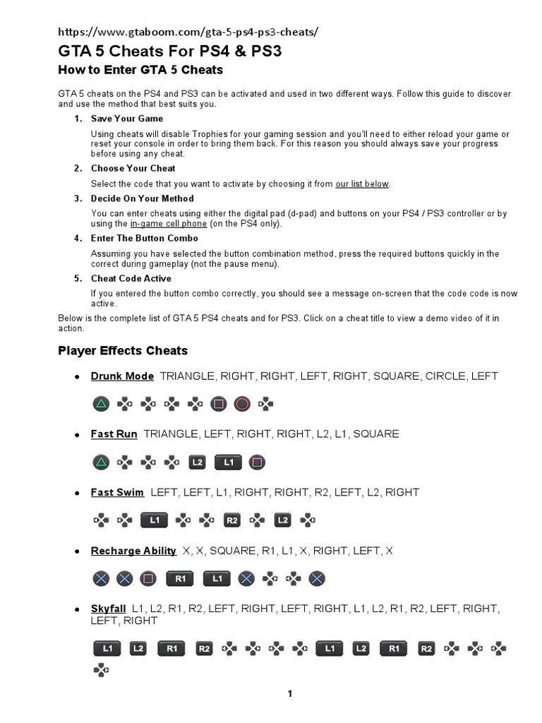Gta 5 cheats ps3 also known as cheats for gta 5 ps3 are very popular among playstation 3 users, all gta 5 cheats for the playstation 3, including codes for invincibility, gta 5 weapons, fast run and explosive gta 5 ammo cheats, are activated by entering certain button combinations during gameplay. Grand theft auto v cheats for ps4 cannot be saved, and must be. Enter one of the following codes while playing the game or at the pause screen to activate the corresponding cheat function. There is no gta 5 money cheat in the game. Click here to view how to get easy and infinite money. So holt ihr euch alle waffen, schnelle fahrzeuge oder unsterblichkeit. Check grand theft auto 5 cheats in our database that aren't included in the base game and there are plenty of real and fantasy things to choose from. If you entered a code correctly, a small confirmation will appear above the map.